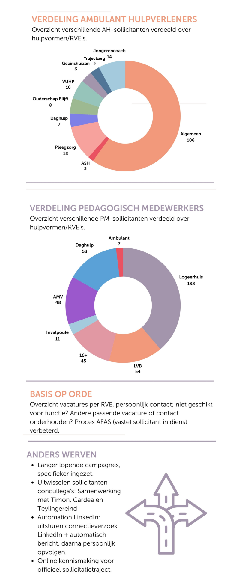 - Interne processen; het proces van het publiceren van een vacature tot aan het in dienst melden van de sollicitant is grondig aangepakt: resultaat sterk verbeterde communicatie richting de sollicitanten. Minder handmatige acties voor recruitment en de personeelsadministratie (dus tijdsbesparing)