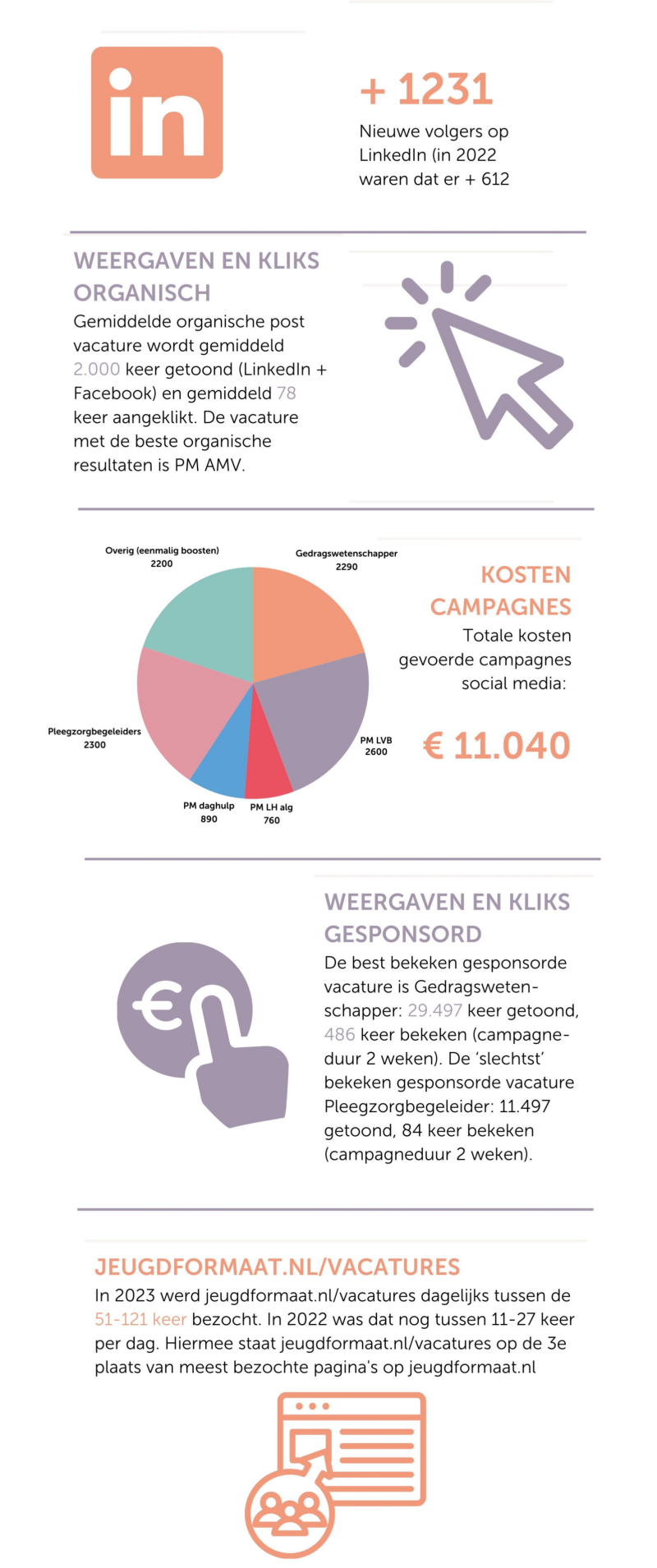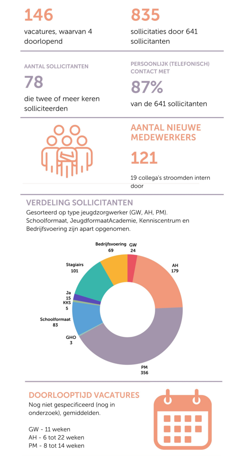- Twee laatste elementen vanuit de visie waar in 2023 een start mee is gemaakt: een plan voor een pilot (en na succes uitrol van referral recruitment (medewerkers als ambassadeurs en gebruik maken van hun netwerk). Streven is om dit in 2024 in te zetten als we een goed en betaalbaar systeem beschikbaar hebben. We gaan in 2024 vol aan de slag met employer branding (laden van het werkgeversmerk). Jeugdformaat wil een organisatie zijn waar mensen graag willen werken en waarbij succesverhalen worden gedeeld in vrienden- en kennissenkringen. Er wordt daarom gewerkt aan de basis voor een nieuwe, duidelijke, aparte ‘werken bij website’.